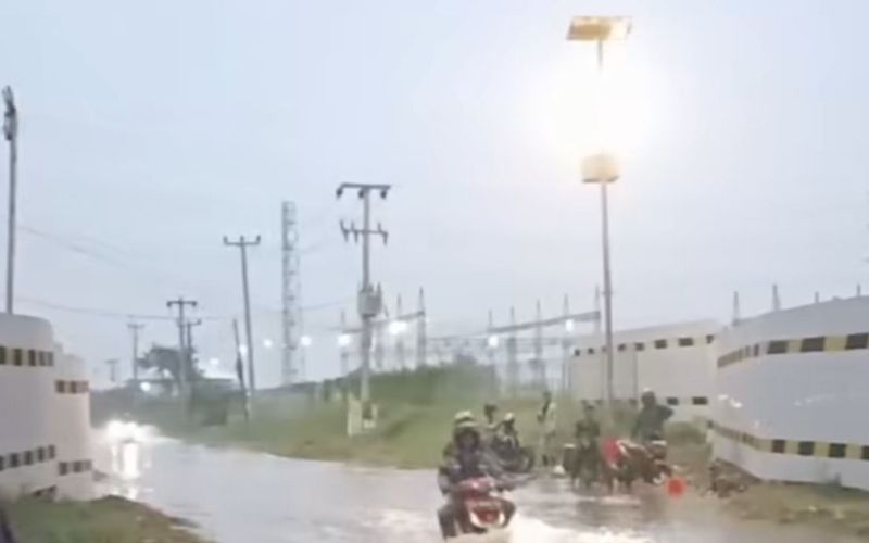 Akibat hujan deras yang mengguyur wilayah tersebut, air meluap dan menggenangi area sekitar, menyebabkan terganggunya aktivitas masyarakat dan lalu lintas.