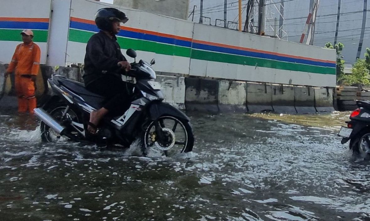 Beritabanten.com – Banjir rob masih merendam kawasan Jakarta International Stadium (JIS) di Jalan RE Martadinata, Jakarta Utara. Genangan yang tak kunjung surut membuat sejumlah pengendara motor terjebak hingga kendaraan mereka mati mesin saat mencoba menerobos genangan.