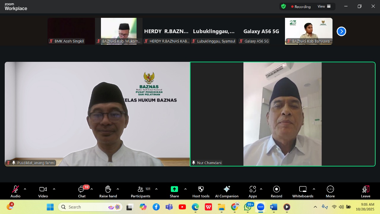 Kegiatan ini diselenggarakan Pusdiklat BAZNAS RI, Senin (20/10/2025). Hadir Kolonel CAJ (Purn) Drs. Nur Chamdani (Pimpinan Bidang SDM, Keuangan & Hukum BAZNAS RI), narasumber Sugianto (Kepala Bagian Pelaporan Nasional BAZNAS RI), Mulya Dwi Harto (Kepala Biro Hukum dan Kelembagaan BAZNAS RI), Sarniti (Kepala Pusat Pendidikan dan Pelatihan BAZNAS RI) dan diikuti oleh amil BAZNAS Provinsi, Kabupaten/Kota se Indonesia.