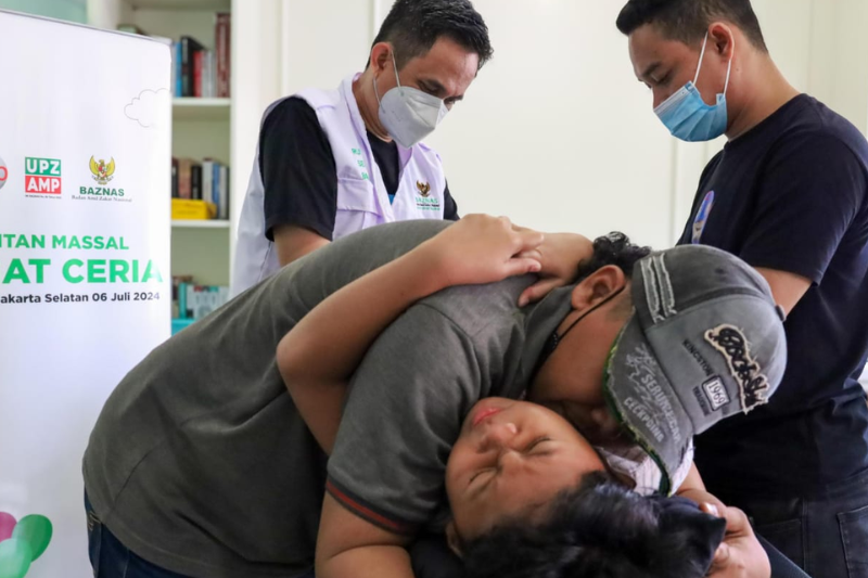 Beritabanten.com – Badan Amil Zakat Nasional (BAZNAS) RI bersama PT Asia Media Prisma menggelar khitan massal Sehat Ceria untuk anak-anak kurang mampu yang diselenggarakan di Kantor GRHA AMP Cilandak Jakarta Selatan, Sabtu (6/7/2024).