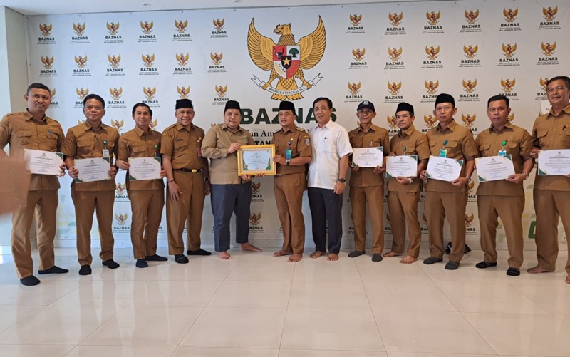 Ketua BAZNAS Kota Tangsel Mohammad Subhan, Dewan Pengawas Dadang Rahardja dan Kabid Pengumpulan Yaya Supriyadi menerima Camat Pamulang Mukroni bersama seluruh lurah yang didampingi Kadinsos Kota Tangsel Heli Slamet terpantau media, hadir di Kantor BAZNAS Kota Tangsel di Islamic Center Baiturrahmi BSD, Kecamatan Serpong, Kota Tangsel pada hari ini Senin 29 Desember 2025.