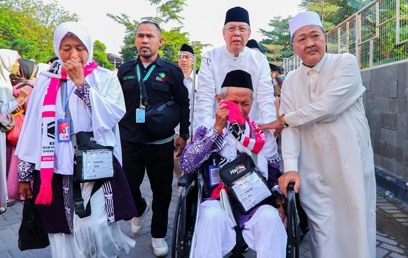 Terpantau media para jamaah yang berjumlah 393 satu kloter tampak haru saat mengikuti proses pelepasan, merasa jadi tamu Allah yang mereka nantikan bertahun-tahun.
