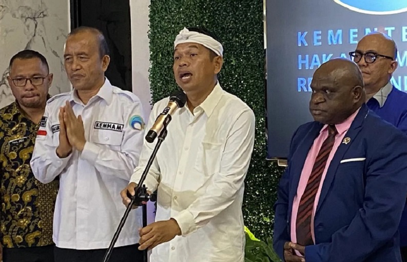 “Tidak ada kebijakan vasektomi, itu tidak benar,” ujarnya singkat, di Kantor Kementerian Hukum dan HAM di Jakarta pada hari Kamis (8/5/2025).