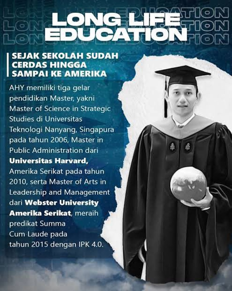 Dengan gelar akademik yang lengkap dan beragam, AHY menunjukkan komitmen yang tinggi terhadap pengembangan diri dan ilmu pengetahuan, yang tentunya akan memperkuat perannya dalam memimpin dan memberikan kontribusi bagi bangsa dan negara. (azk)