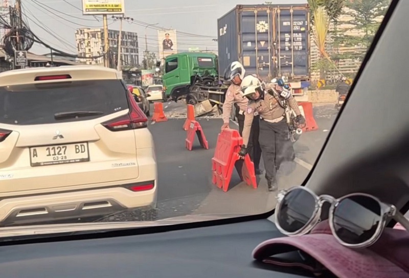 Insiden ini menyebabkan gangguan lalu lintas yang cukup signifikan, membuat jalanan di sekitar lokasi mengalami kemacetan pada pagi hari.