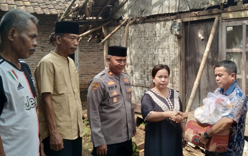 Selain itu, Endang juga membawa sembako berupa beras dan sarimi untuk membantu keluarga Hasan Nudin.