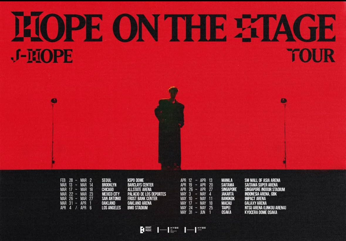 BTS mengumumkan bahwa J-Hope, salah satu anggota mereka, akan menggelar tur konser solonya yang bertajuk ‘HOPE ON THE STAGE’. Tur ini akan dimulai pada 28 Februari hingga 2 Maret 2025 di KSPO Dome, Seoul, Korea Selatan.