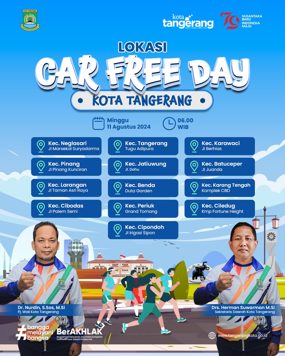 Kegiatan tersebut diselenggarakan secara serentak di 13 lokasi di Kota Tangerang, Minggu 11 Agustus 2024. Warga bisa dengan leluasa memilih tempat bersenang bersama keluarga.