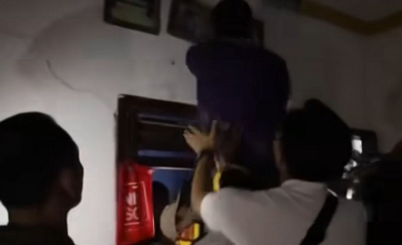 Setelah melakukan penggerebekan pada malam hari, polisi berhasil menemukan KH bersembunyi di atas plafon rumah tersebut.