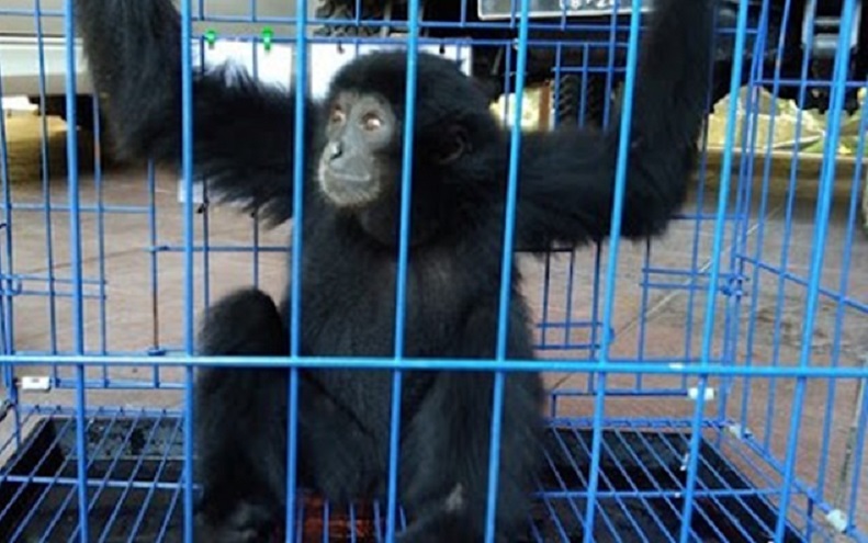 Tersangka yang diketahui berinisial NIK (21) ditangkap di kediamannya di Kecamatan Kelapa Dua, Kabupaten Tangerang saat hendak mengirimkan dua ekor Owa Siamang (Symphalangus Syndactylus) melalui layanan ojek online.