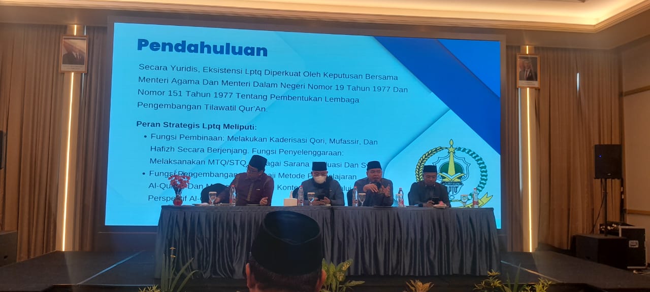 Dalam paparannya, Rifaudin menjelaskan bahwa arah kebijakan nasional Kementerian Agama menekankan penguatan kelembagaan LPTQ agar dikelola secara lebih profesional dan berkelanjutan.