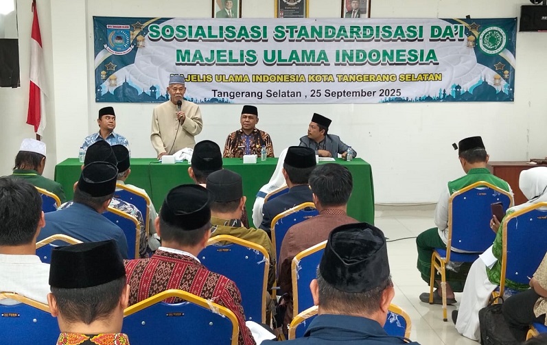 “Kalau peci miring tanda seorang dai tidak siap. Bagaiman memberikan ceramah pakai peci saja tidak bisa. Masyarakat akan menilai dari hal yang sederhana,” kata dia, ketika memberikan sambutan pada acara Sosialisasi dan Standarisasi Dai MUI Kota Tangsel di Gedung Kelembagaan Kota Tangsel, Jalan Siliwangi, Kelurahan Pamulang Barat, Kecamatan Pamulang Kota Tangsel, Kamis pagi 25 September 2025.