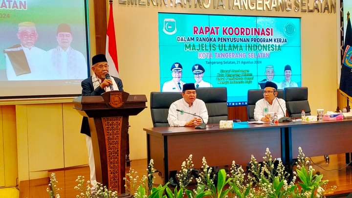 Ulama panutan ini meminta pada peserta Rakor MUI Kota Tangsel menyelami tema “Sinergi Membangun Kota Tangerang Selatan untuk Pemilu Damai Menuju Indonesia Maju” dengan makna kata akur.