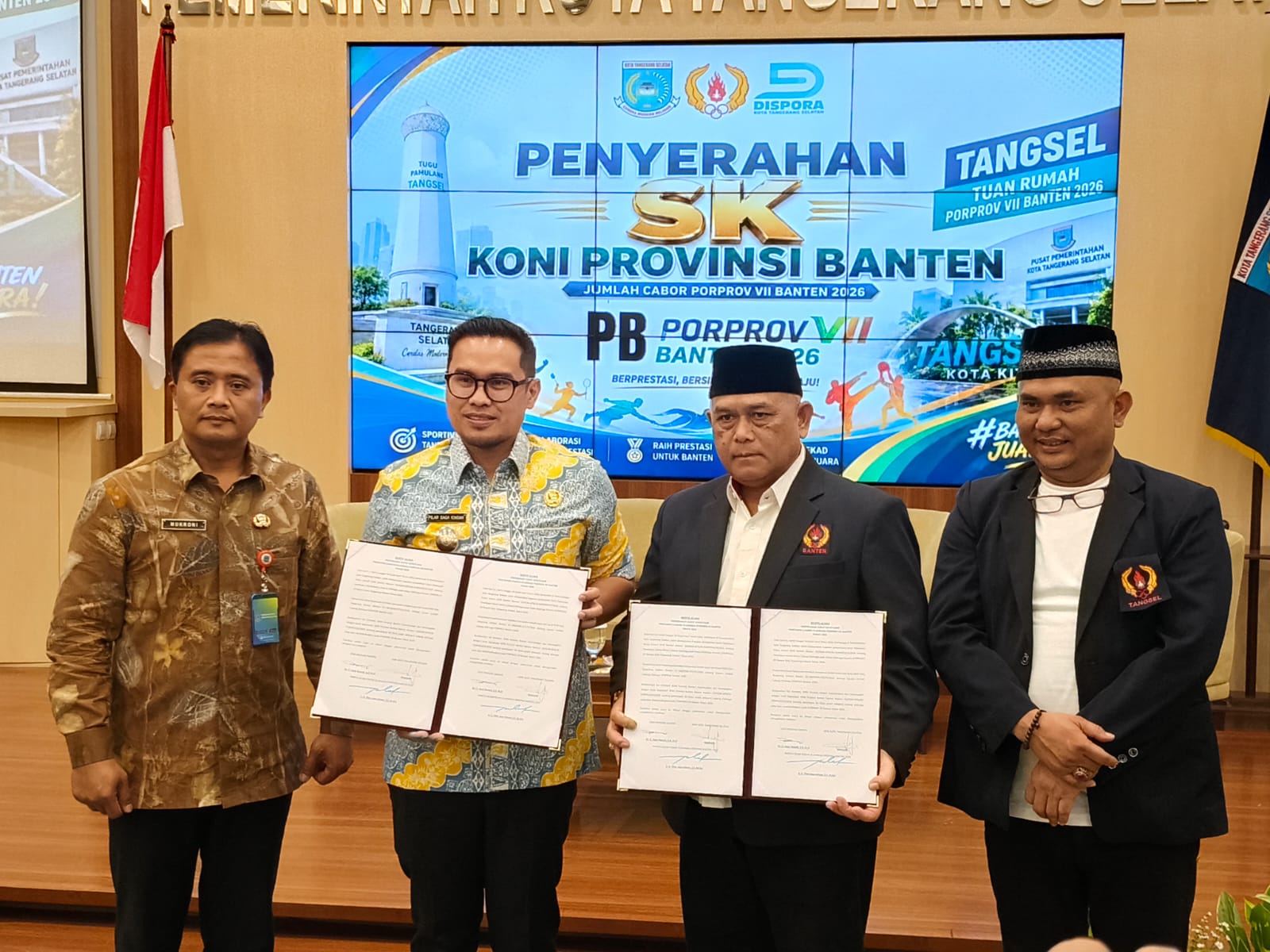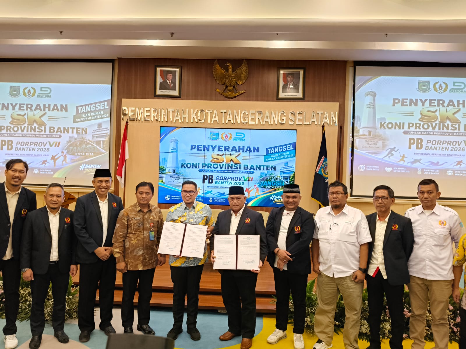 Penetapan tersebut disampaikan dalam agenda penyerahan SK KONI Provinsi Banten kepada Ketua PB Porprov Banten 2026 di Aula Blandongan, Pemkot Tangsel, Kamis (30/4/2026).