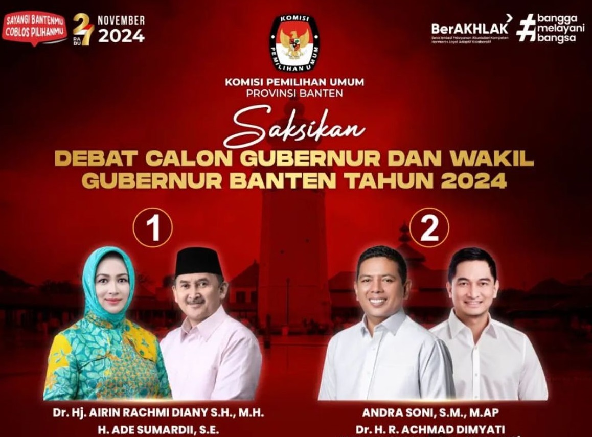 Beritabanten.com – Komisi Pemilihan Umum (KPU) Provinsi Banten akan menggelar debat pertama untuk calon gubernur (cagub) dan calon wakil gubernur (cawagub) dalam Pilkada 2024, yang berlangsung di Jakarta pada Rabu (16/10/2024).