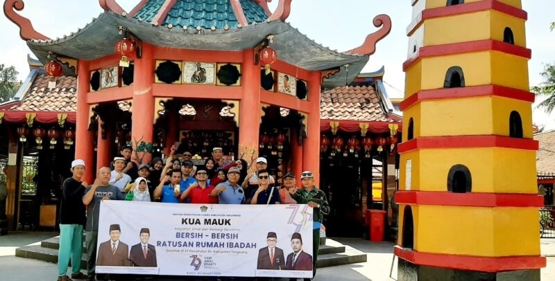 Beritabanten.com – Kantor Urusan Agama (KUA) Mauk melaksanakan bersih-bersih di Klenteng Tjo Soe Kong Kecamatan Mauk, Kabupaten Tangerang pada Kamis, 2 Januari 2025.