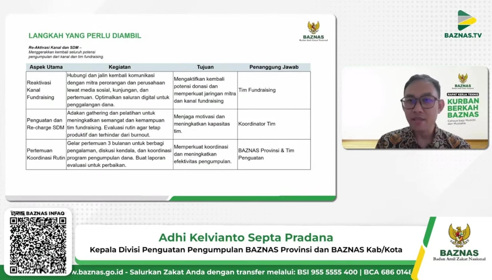 Pada kesempatan ini, Kepala Divisi Penguatan Pengumpulan BAZNAS Adhi Kelvianto Septa Pradana menyampaikan langkah-langkah apa yang perlu dilakukan BAZNAS untuk mengoptimalkan pengumpulan ZIS tahun 2025 ini agar mencapai target Rp50 triliun.