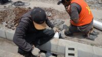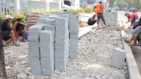 Selanjutnya, kanstin (pembatas trotoar) dipasang sesuai dengan kondisi dan kebutuhan lokasi dan ubin pengarah untuk disabilitas.