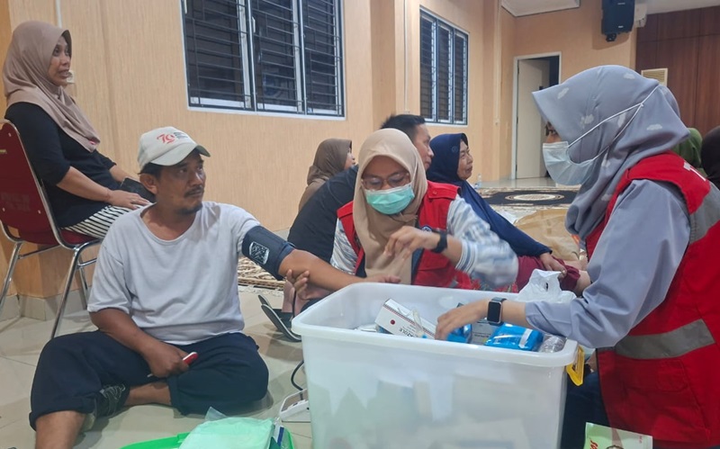 Pengecekan kesehatan ini dilakukan untuk memastikan kesehatan para korban terdampak. Mereka juga membawa boks perbekalan obat-obatan.