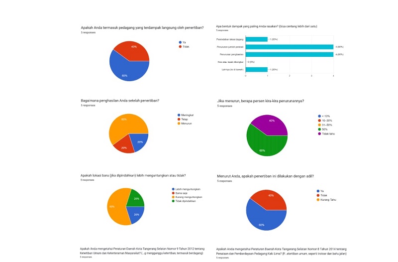 Hasil dari survei tersebut, dikatakan, pasca penertiban PKL sebanyak 150 tersebut terdapat penurunan pembeli sebanyak 80 persen berbanding sama dengan penghasilan para pedagang.
