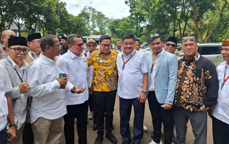 Beritabanten.com – Wakil Wali Kota Tangerang Selatan Pilar Saga Ichsan berangkulan erat dengan para pengusaha yang mengikuti acara Musyawarah Kota (Muskot) IV Kamar Dagang dan Industri (KADIN) Kota Tangsel.