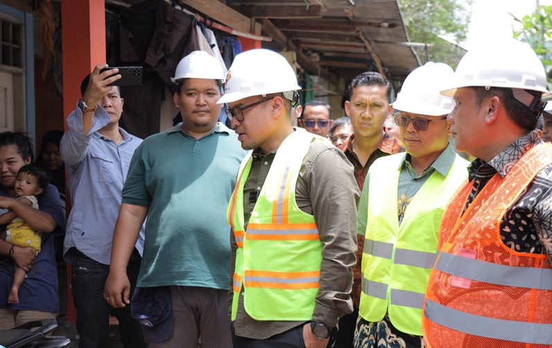 Tinjauan untuk pembangunan ini realisasi dari program menata kawasan kampung kumuh di Kelurahan Bambu Apus RW O1, Kecamatan Pamulang, Kota Tangsel pada Kamis 6 November 2025.