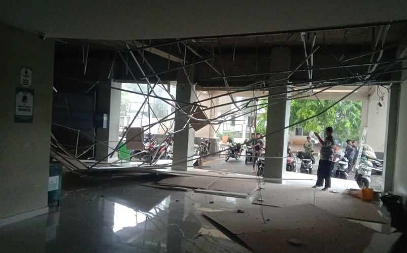 Erwin menuturkan selain plafon di pintu masuk selatan lantai 1, terdapat tiga titik plafon di lantai 2 yang juga mengalami kerusakan akibat terpaan angin.
