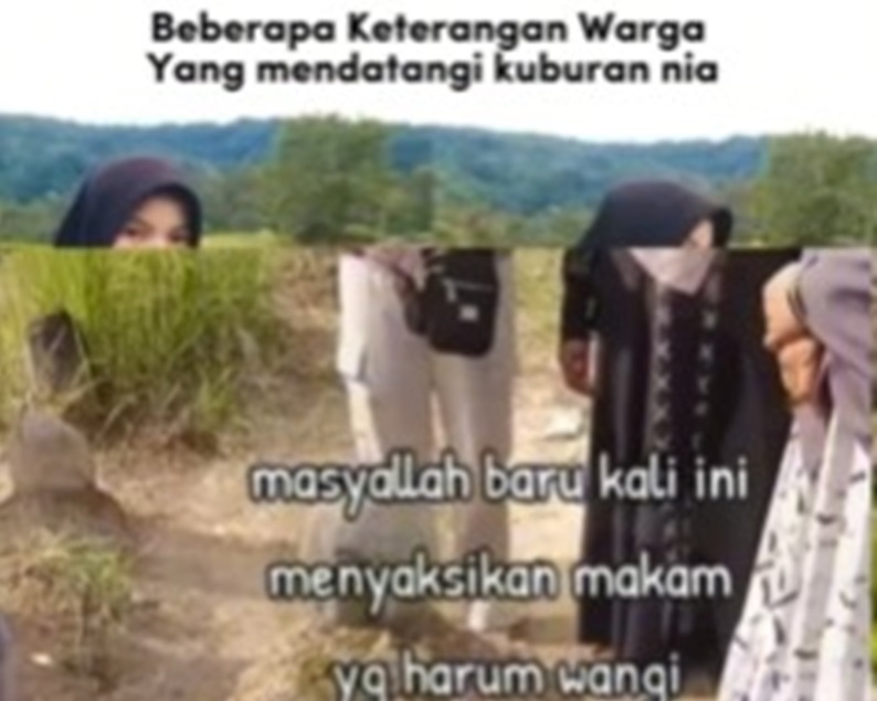 Meskipun sudah tiga minggu dimakamkan, wangi dari makamnya masih tercium. Nia gadis penjual gorengan adalah korban pembunuhan di Padang Pariaman, Sumatera Selatan, beberapa waktu lalu.