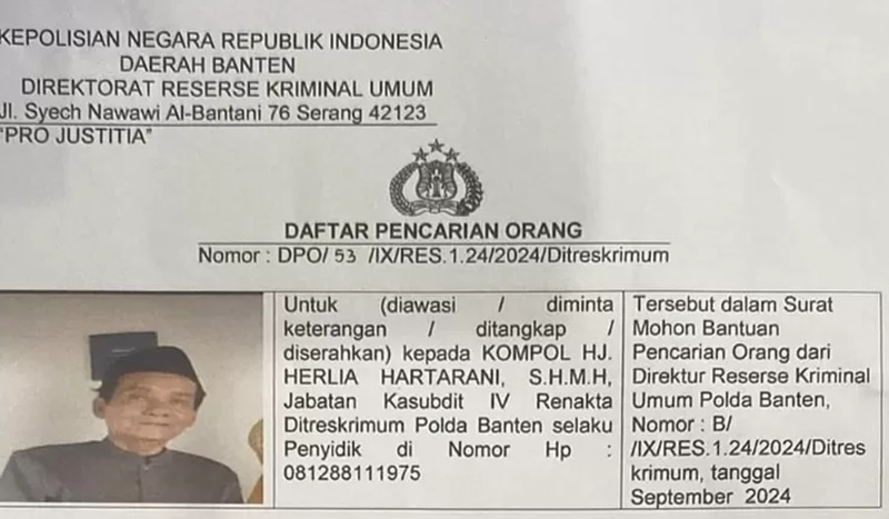 NR yang merupakan warga Desa Sujung, Kecamatan Tirtayasa, Kabupaten Serang tersebut akhirnya mendapat surat DPO dari Polda Banten.