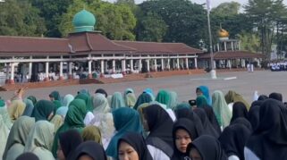 Para Santri Berkumpul di Alun-alun Barat Kota Serang untuk Peringati Hari Santri Nasional