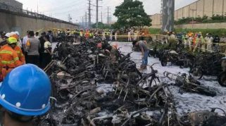Tragis, Puluhan Kendaraan Karyawan PT IWIP Maluku Utara Terbakar
