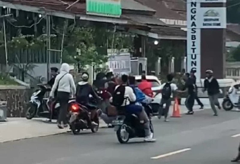 Hal tersebut terekam oleh kamera warga yang dekat dengan lokasi kejadian. Meski kejadian tawuran tesebut hanya beberapa menit tapi bisa membuat resah warga.