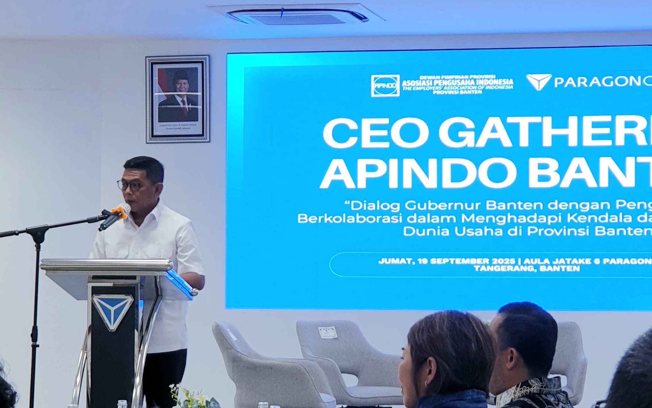 Beritabanten.com – Gubernur Banten Andra Soni menghadiri acara CEO Gathering yang digelar oleh Asosiasi Pengusaha Indonesia (APINDO) di Aula Jatake 6 – PT Paragon Technology and Innovation, Kab. Tangerang, Jumat (19/9).