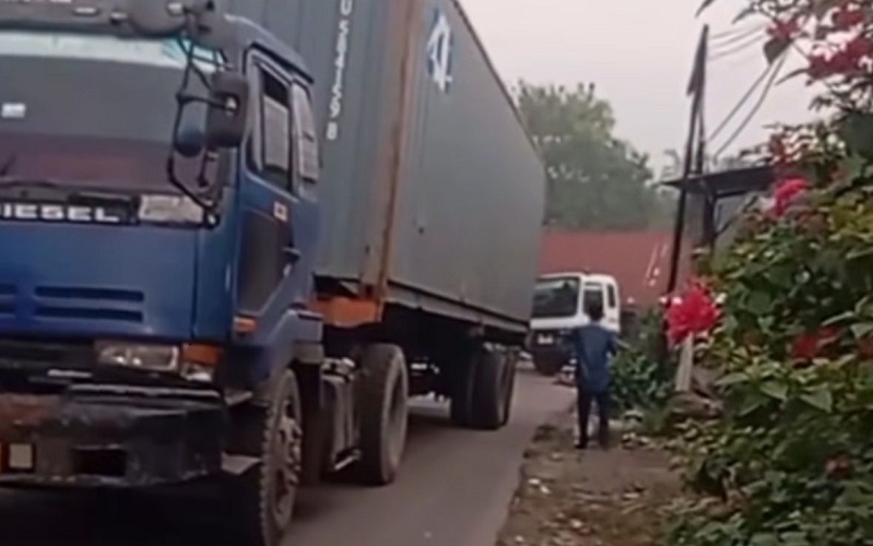 Dugaan sementara dari warga sekitar, truk tersebut tidak mampu melaju karena jalan nanjak sementara bebannya terbilang berat.