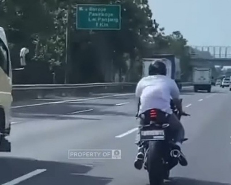Video itu menunjukkan pengendara yang tampak memakai seragam SMA memacu moge di jalur tol, menyalip sejumlah mobil dan truk di sepanjang jalan.