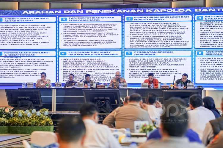 Rapat mengambil tempat di Aula Gawe Kuta Baluwarti Polda Banten kemarin, menghimpun masukan, informasi, serta menyamakan persepsi dari seluruh jajaran dan instansi terkait, baik dari unsur TNI, pemerintah daerah, dinas teknis, hingga lembaga pelayanan publik.